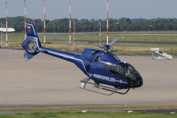 «This training helicopter of the Federal Police is usually based at the Federal Police Flying Unit in Sankt Augustin. Here, however, it is seen taking off on August 21 from the heliport.»