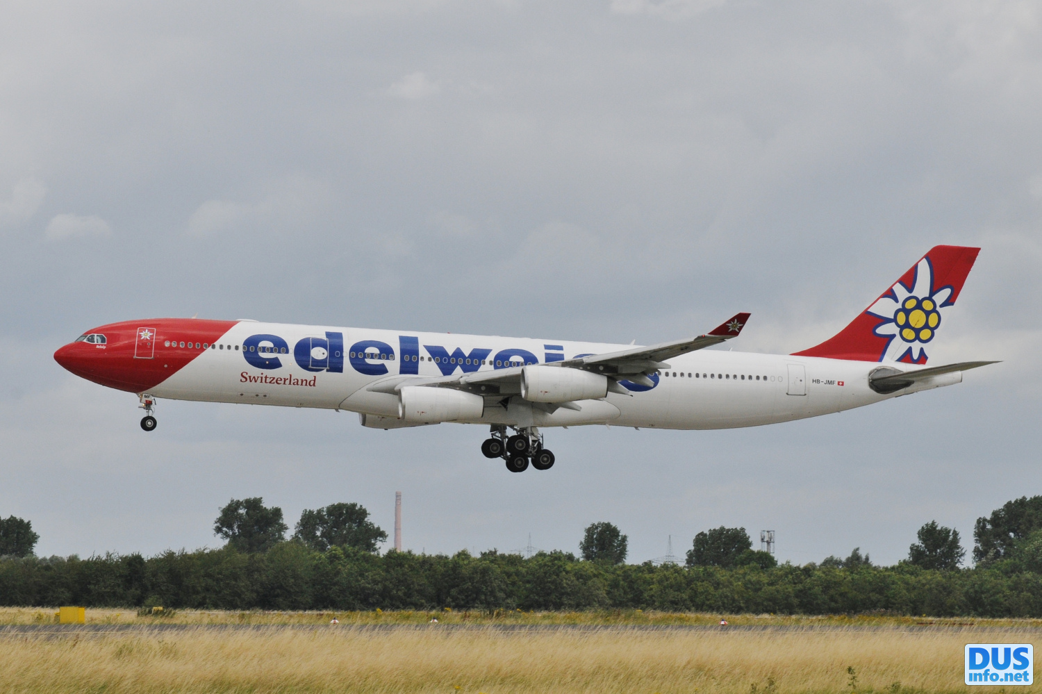 «Belalp on the third visit to DUS on final approach 23L on 7 July. Special flight for the football fans of the Swiss national team»
