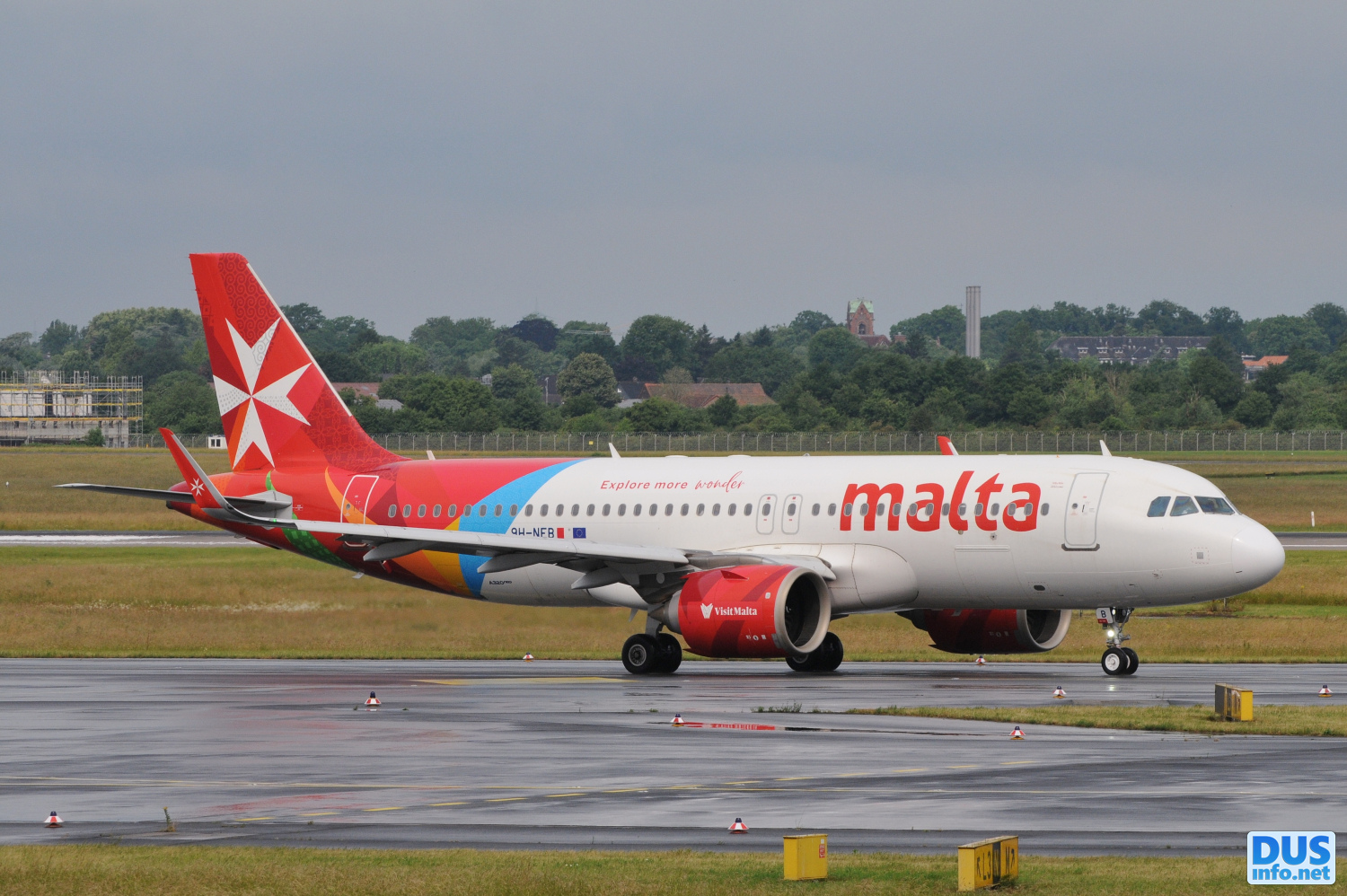 «Now also with an additional slogan promoting the island of Malta... explore more wonder. 9H-NEB still carries the more colorful livery like 9H-NEC, D, and O, along with the large titles.»