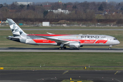 «Etihad flies primarily with B787-9s, of which 33 aircraft are in the fleet of Etihad, here A6-BLK on March 13, from DUS to Abu Dhabi»