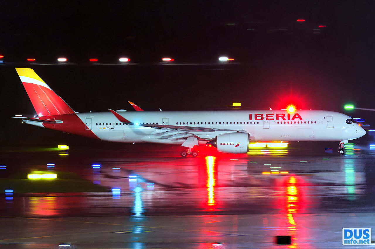 «Upgrade for AOG A320 EC-NDN due to tailstrike. Taxiing in heavy rain to takeoff.»