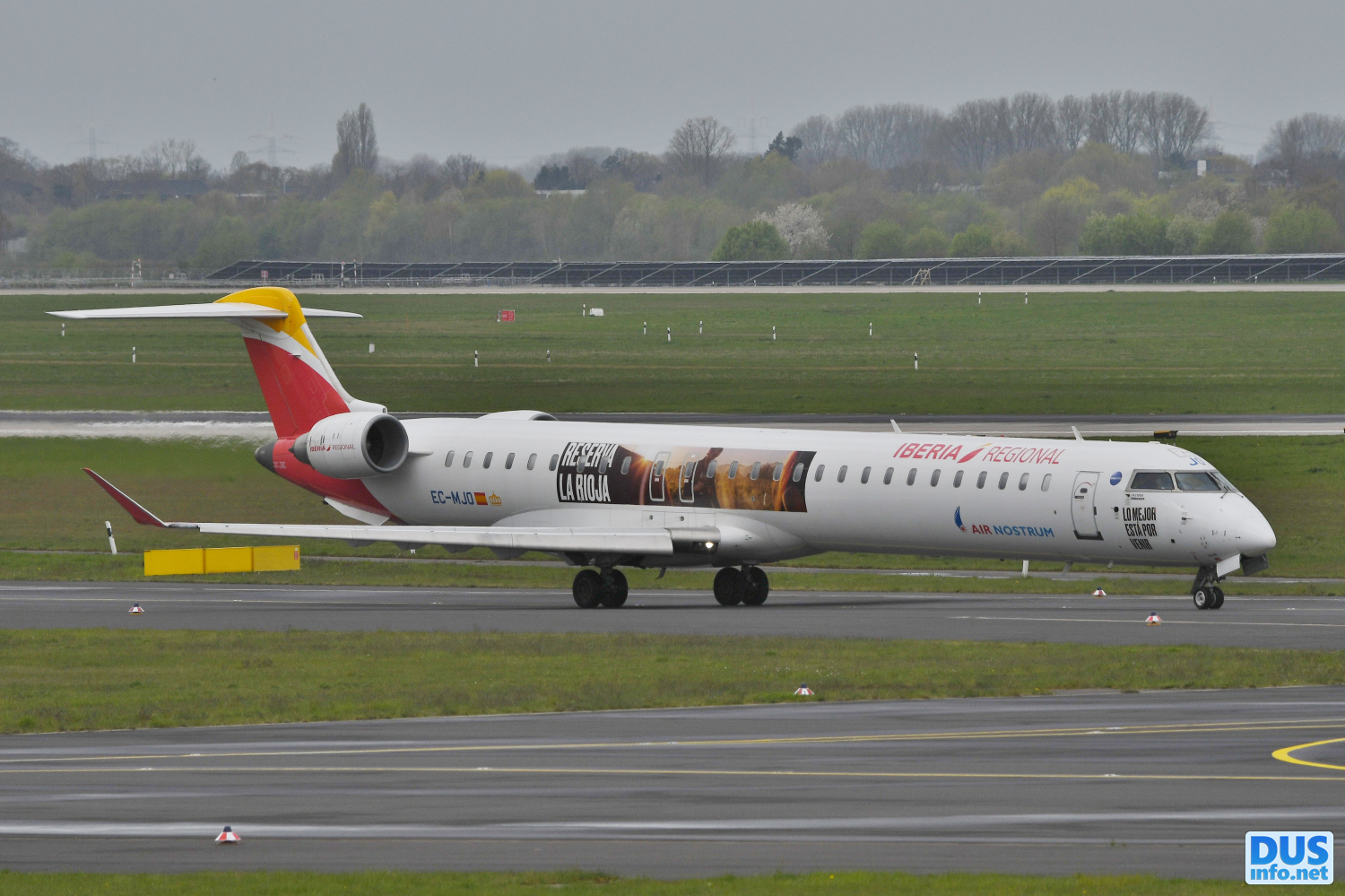 «Since 2022, this Bombardier Canadair Regional Jet has carried advertising for the Rioja wine region and the slogan Lo Mejor Esta Por Venir - The best is yet to come. Seen here on the Iberia schedule to Madrid on April 4»