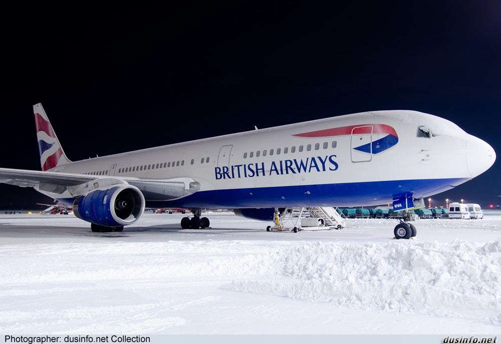 «this BA B767 has been stuck at DUS due to snow chaos at London Heathrow»
