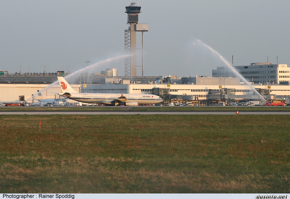 «Water fountain after arrival for inaugural flight from beijing on March, 27th.»