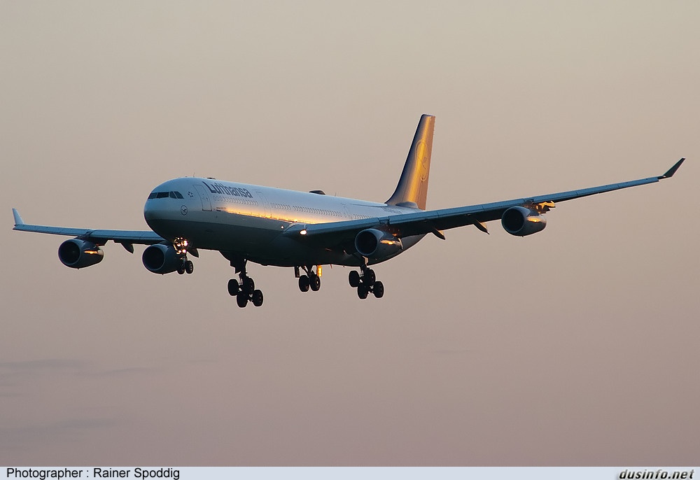 « Very early morning arrival as ferryflight from FRA with very first sunrays touching the aircraft.»